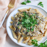 Makaron pełnoziarnisty z fit sosem pieczarkowym na mleczku kokosowym - pomysł na prosty i zdrowy obiad