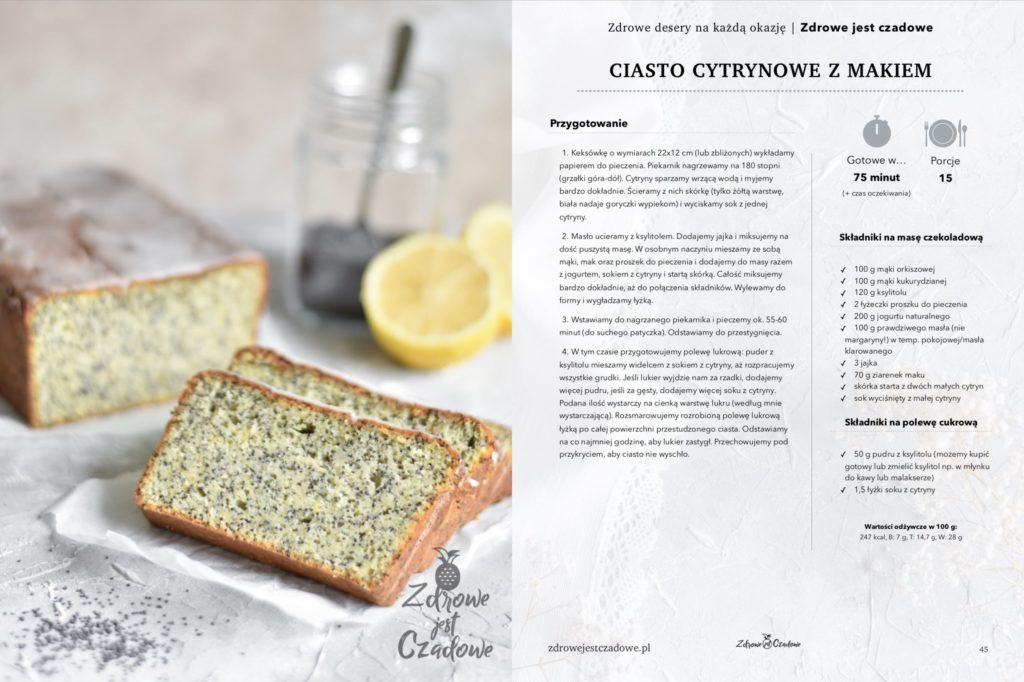 Jest on również idealny dla osób na diecie oraz osób odchudzających się. Przepisy mają znacznie mniej kalorii niż klasyczne słodycze i desery, zawierają nawet 3/4 mniej tłuszczu i zero cukru. W każdym przepisie znajdują się także wartości odżywcze w 100 g deseru. 🙂